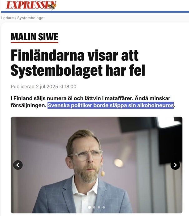 Allt fler inser galenskapen med misstro och omyndigförklaring av vuxna medborgare. I Finland har man släppt starköl och lättvin till vanliga butiker och har betydligt enklare förfarande för gårdsförsäljning än Sverige. Ändå minskar alkoholkonsumtionen. Precis som i Sverige trots all alkoholreklam, bättre öppettider på systemet och en explosion av krogar med öl och vintillstånd. Bra betraktelse här i Expressen. Klicka på bilden nedan.