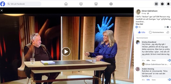Göran ställde frågan till Leif GW Persson i SVT Veckan med Camilla och Leif GW den 7 maj och fick fullt medhåll i sakfrågan. Klicka på bilden nedan för att komma till Görans öppna Facebooksida med en inspelning.